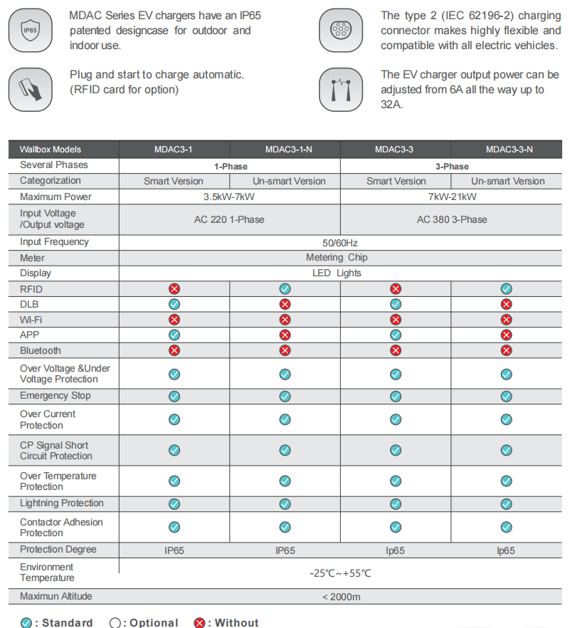 1) Réimse Cumhachta Charger EV: 3.5kW ~ 21kw.